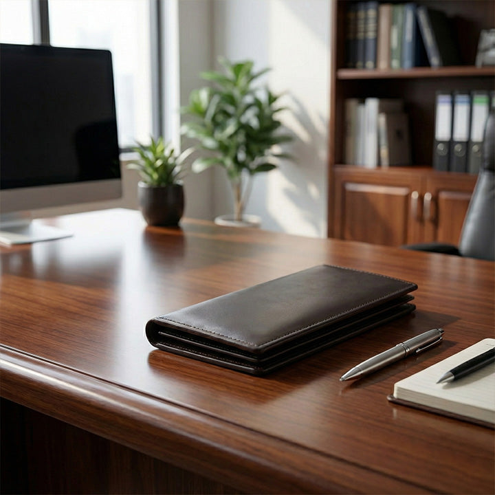The MetroLuxe Leather Luxe Wallet is built for today’s professional, blending classic leather craftsmanship with a sleek, functional design. Made from high-quality cow leather, it features a refined finish and long-lasting durability. With a secure phone holder and thoughtfully arranged space for cards, cash, and daily essentials, it delivers practicality without sacrificing style.