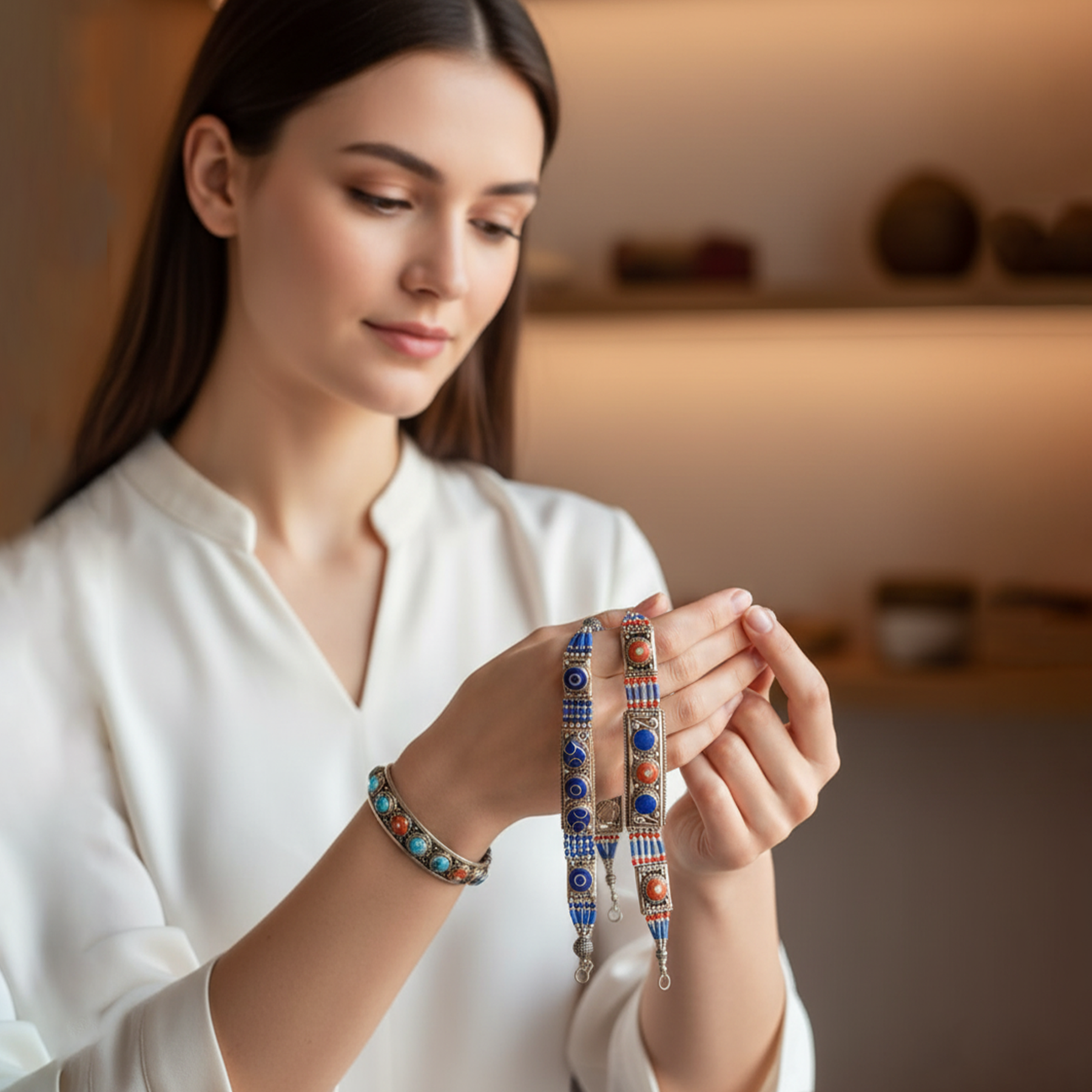 Perfect for weddings, festive occasions, or as a statement accessory for everyday wear, this bracelet reflects the cultural artistry of Pakistan’s northern regions. A must-have for anyone who appreciates authentic antique jewelry with a story.